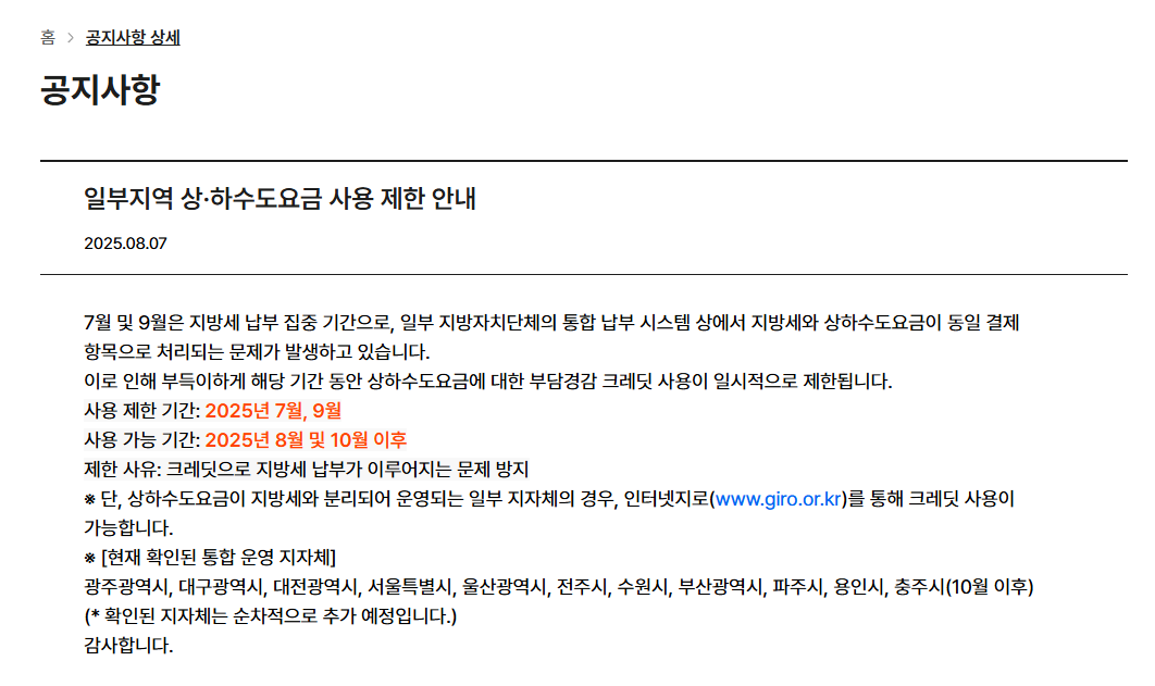 이번 부담경감크레딧 사용처 확대는 특히 집합건물 입주 소상공인에게 의미가 큽니다. 전기, 가스, 수도요금이 관리비에 합산되어 나오는 경우, 이전에는 공과금 결제가 불가능해 크레딧을 거의 활용하지 못했기 때문입니다. 그러나 이제는 휴대폰 요금이나 주유비로 사용할 수 있어, 연말까지 남은 기간 동안 50만 원 전액을 쓰는 것이 가능합니다.
